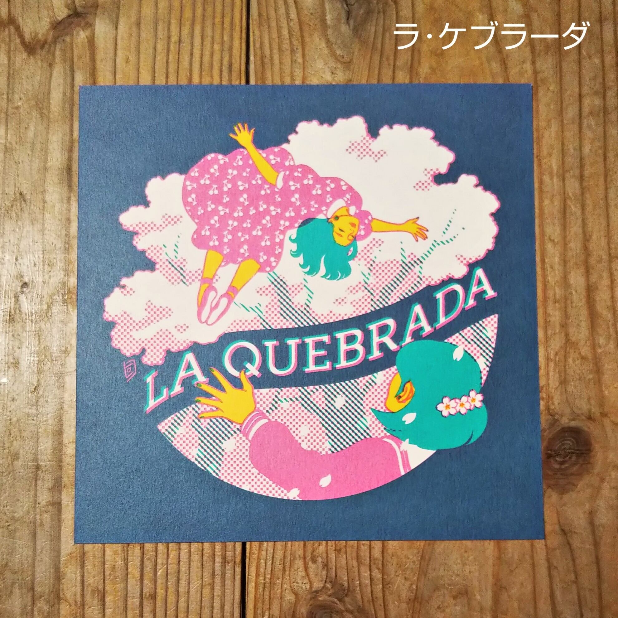 すべてシルクスクリーンのハンドプリントで、「マゼンタ&イエロー&ブルーグリーン」の3色重ね刷りで色を表現しています